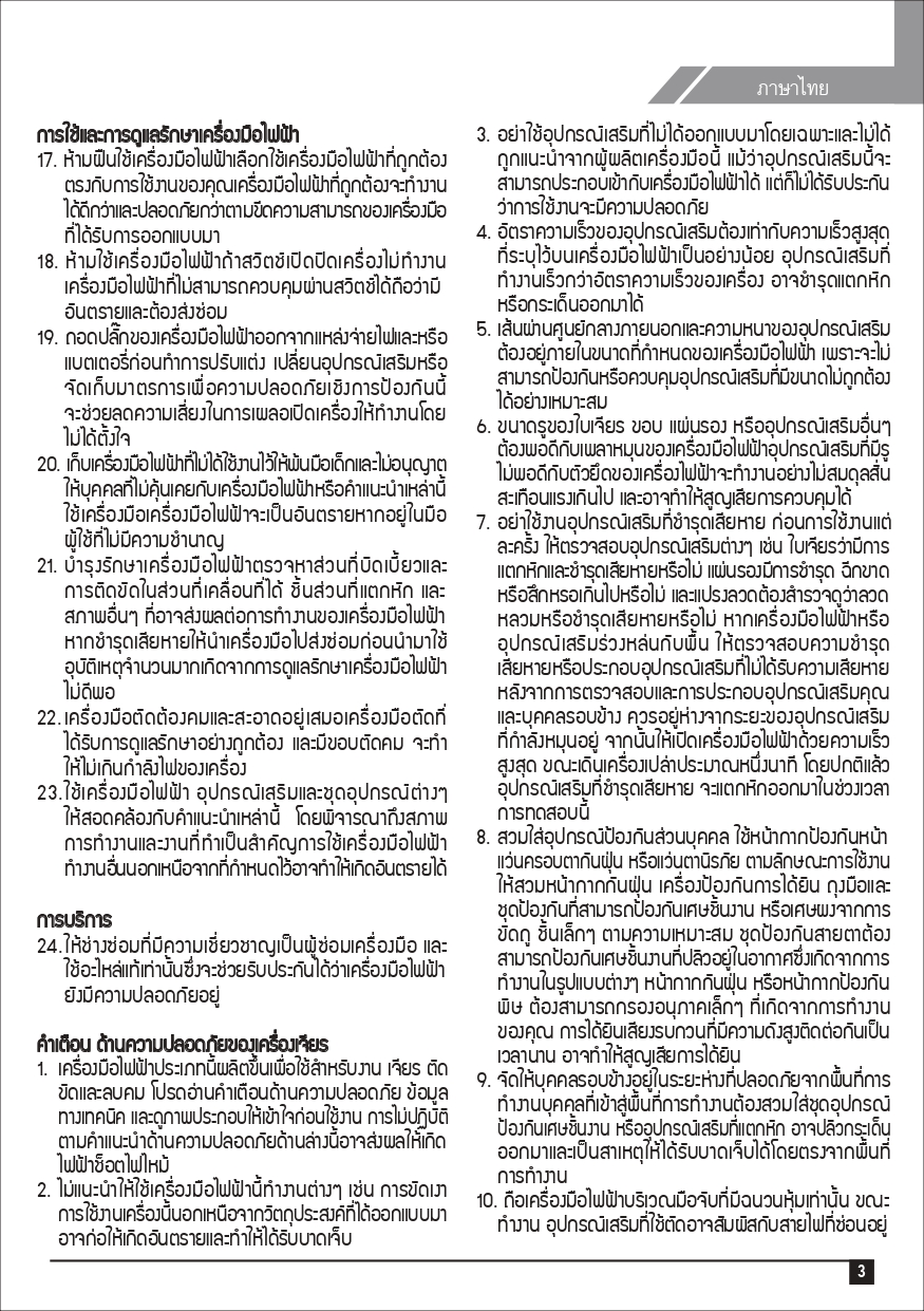 • ด้ามจับ ถูกออกแบบตามสรีระศาสตร์ เพื่อลดความเมื่อยล้าของข้อมือผู้ใช้ในขณะทำงาน
