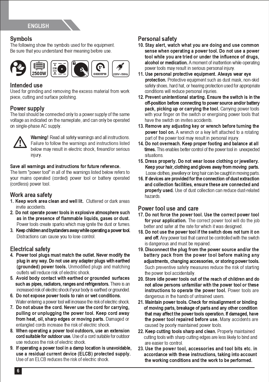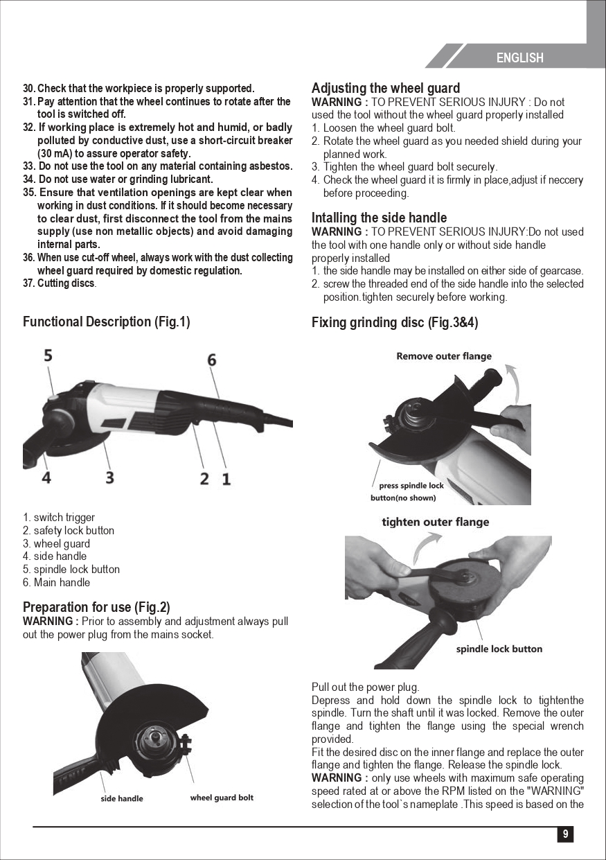 (Before every work Make sure that the grinding wheel is not damaged or cracked.)