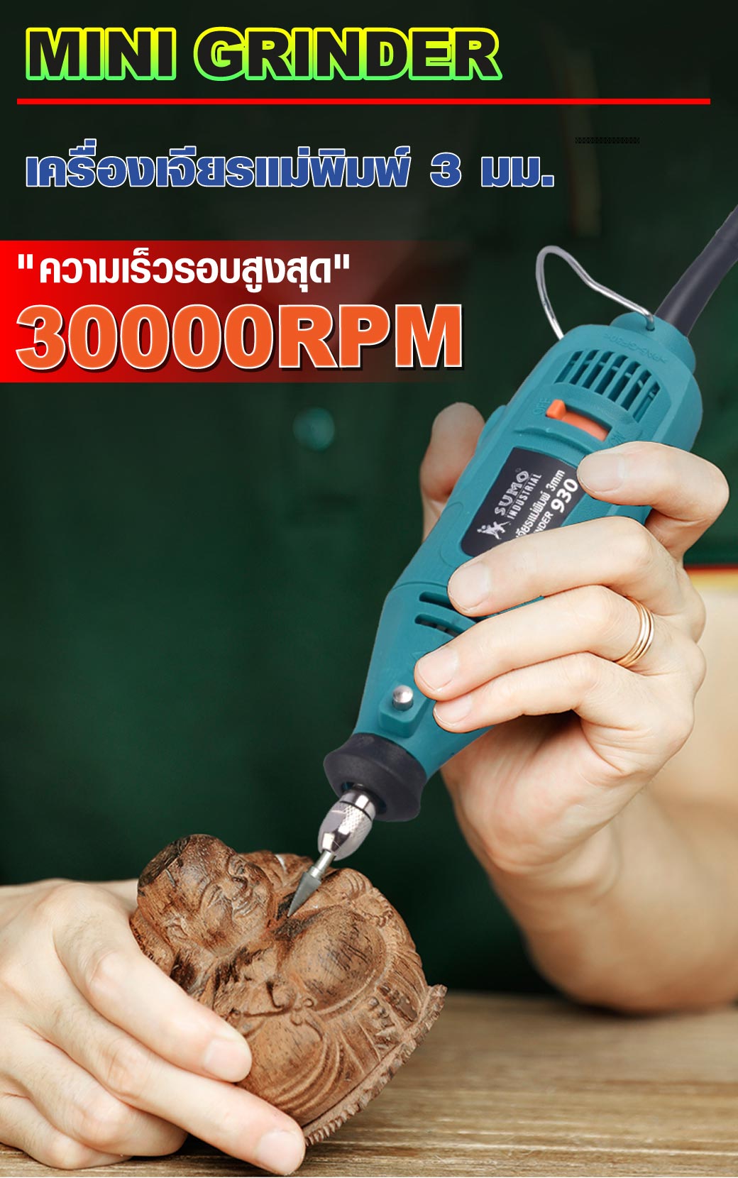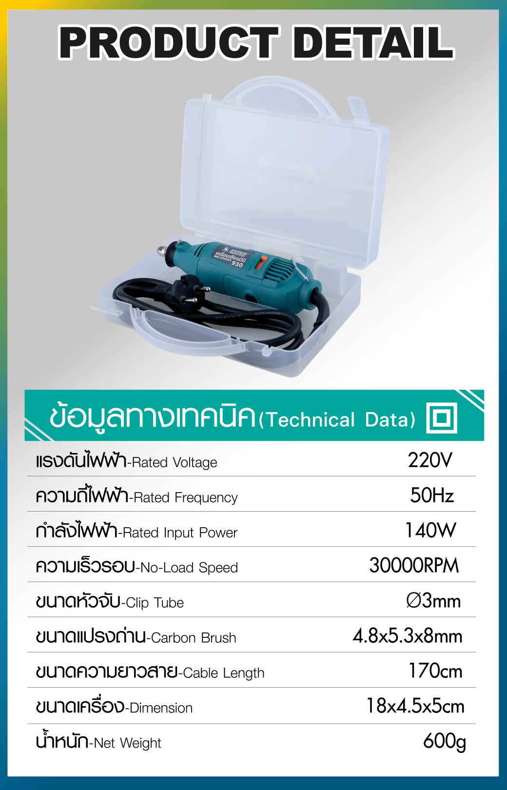 เครื่องเจียรแม่พิมพ์ 3 มม. รุ่น 930 แรงดันไฟฟ้า 220V กำลังไฟฟ้า 140W ความเร็วรอบ 30000RPM