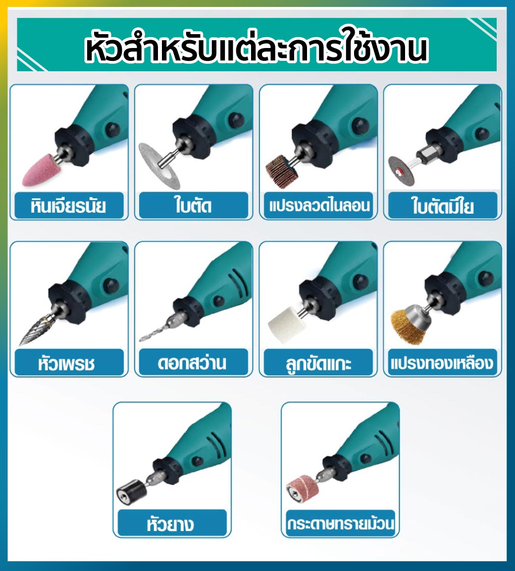 • เปลี่ยนอุปกรณ์ ดอกเจียร ขัด เจาะ ตามลักษณะการทำงาน