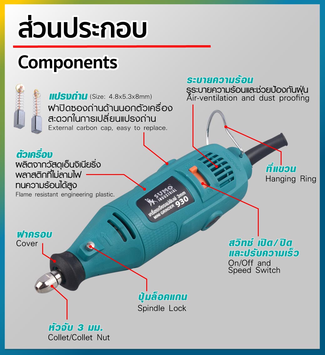 คุณกำลังรีวิว:เครื่องเจียรแม่พิมพ์แกน 3mm รุ่น 930 SUMO