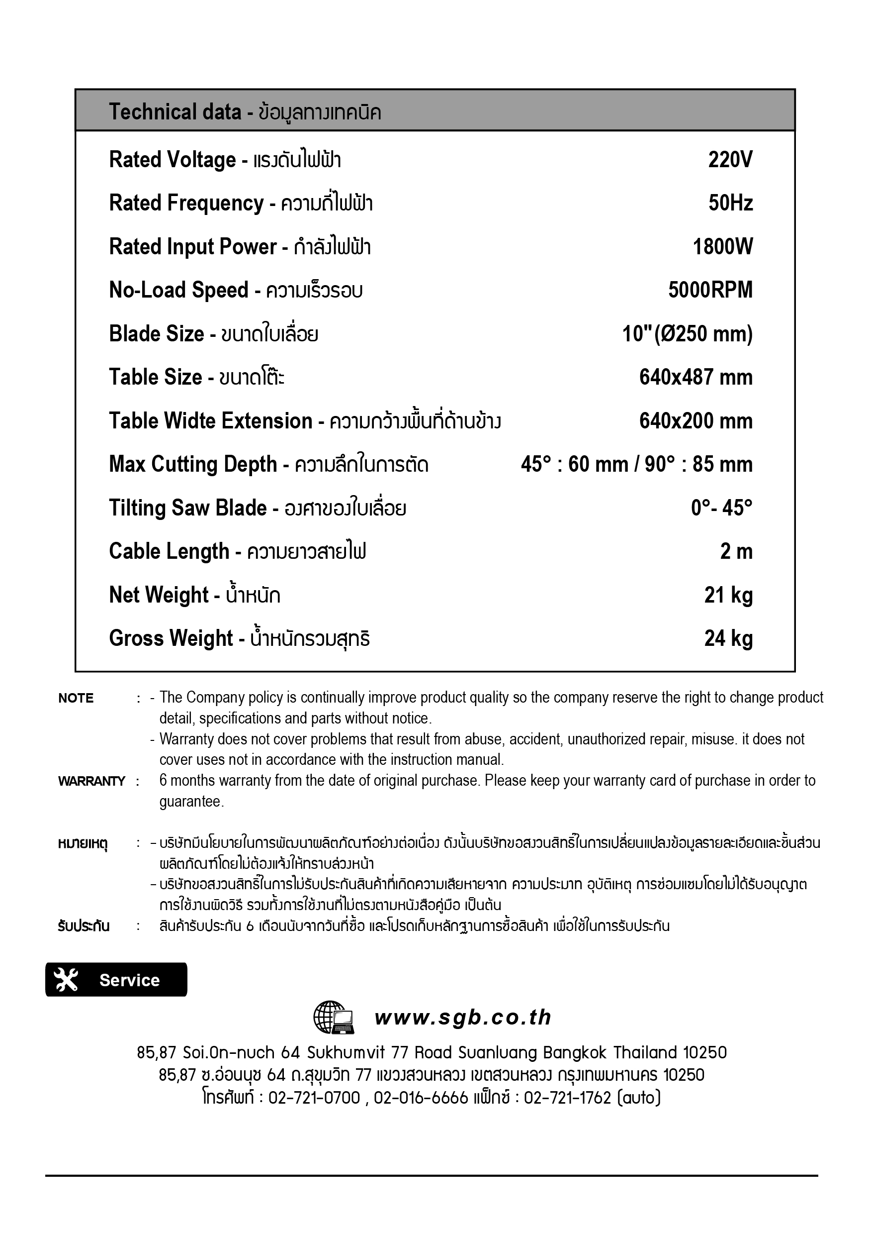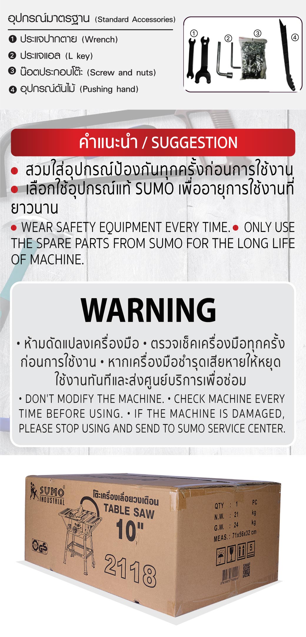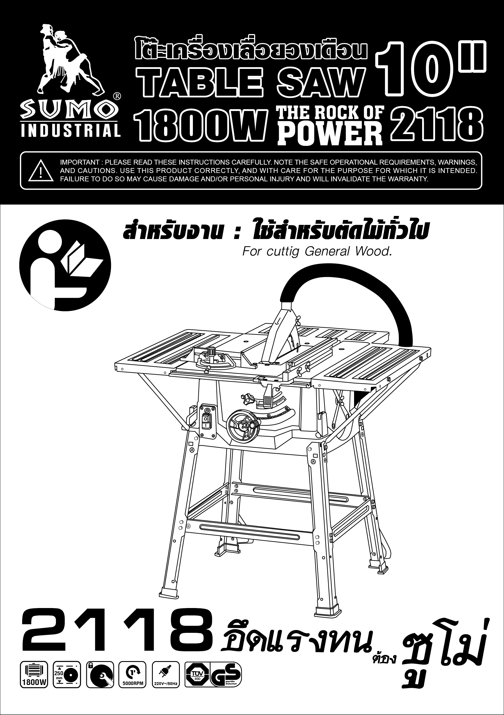 คุณกำลังรีวิว:โต๊ะเครื่องเลื่อยวงเดือน 10" รุ่น 2118 SUMO