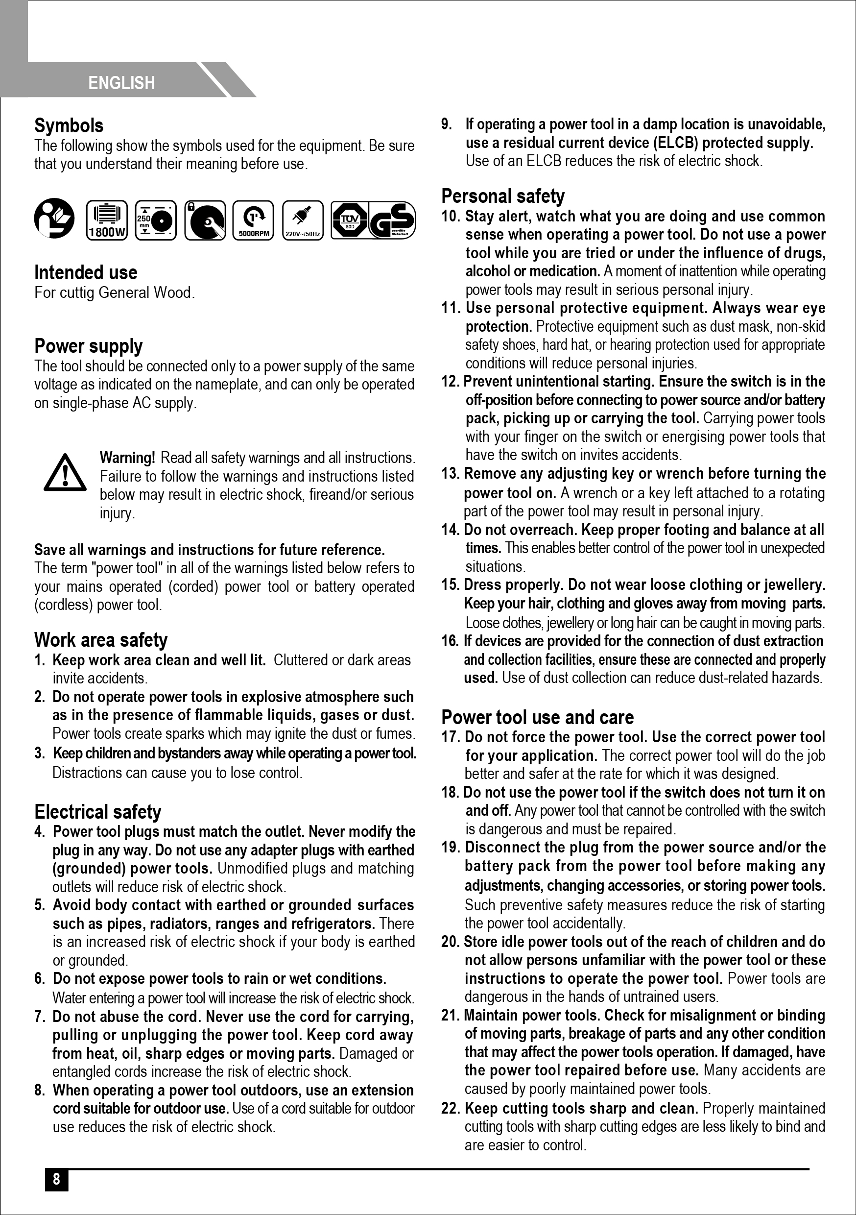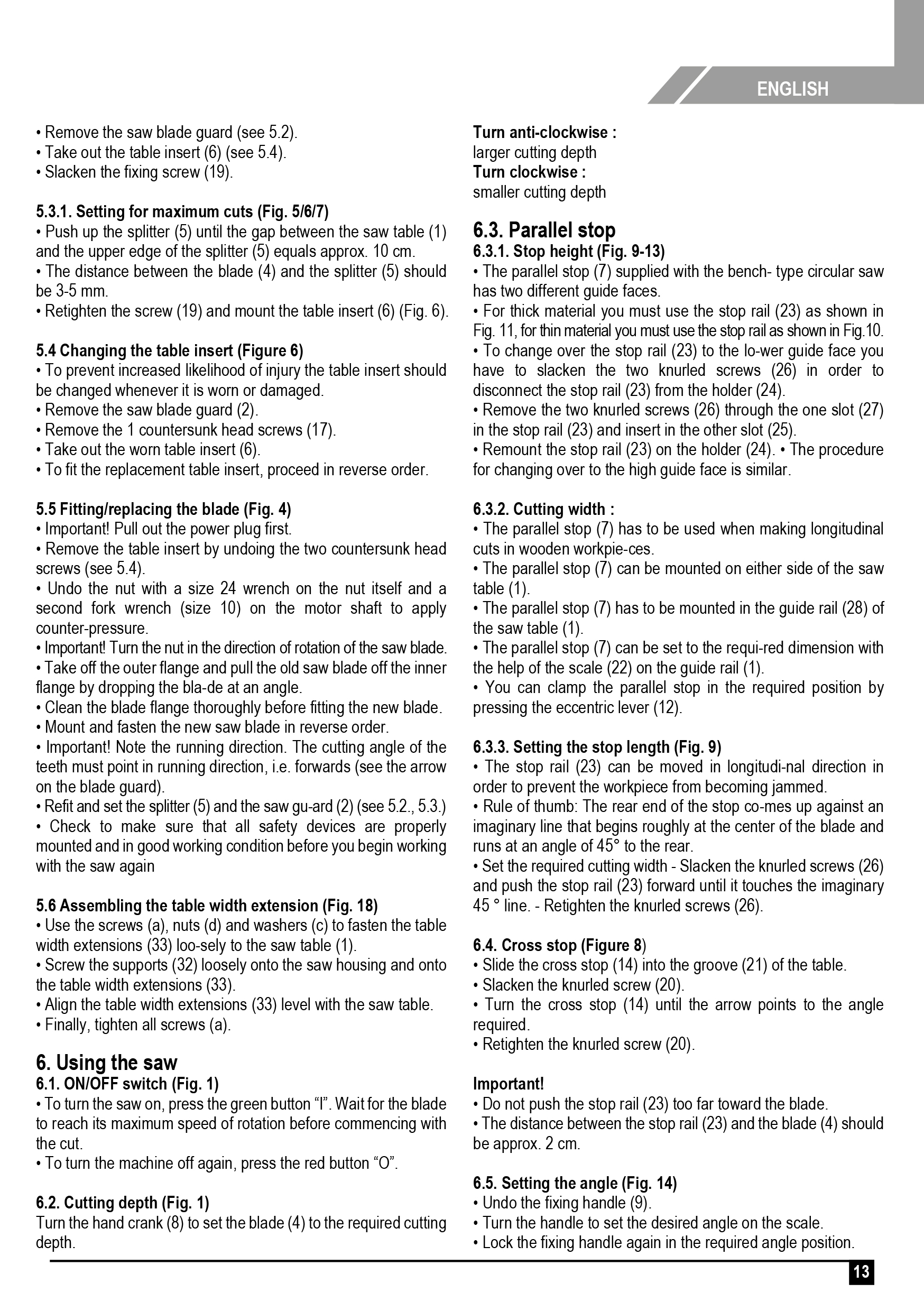 (Saw blade can be tilted 0 - 45 º)