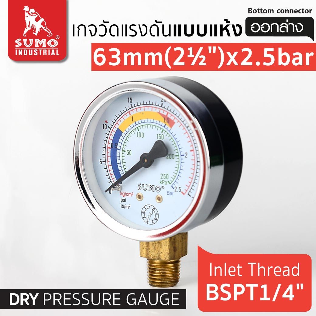 เกจวัดแรงดัน แบบแห้ง 63mm.x2.5barx1/4" ออกล่าง