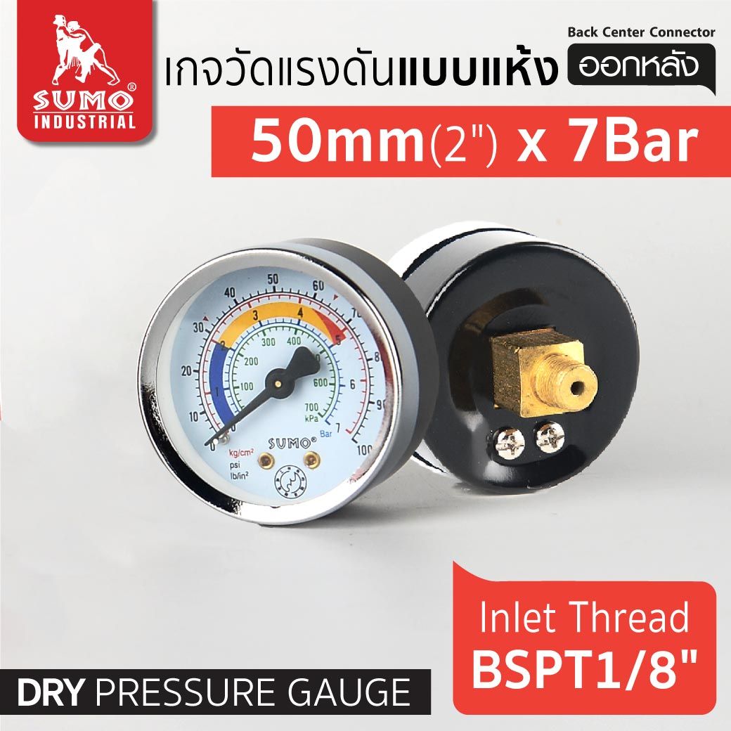 เกจวัดแรงดัน Pressure Gauge แบบแห้ง ออกหลัง sumo