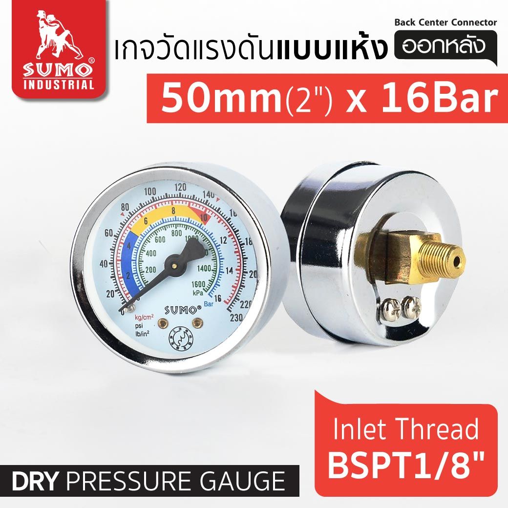 เกจ์วัดแรงดัน Pressure Gauge แบบแห้ง ออกหลัง sumo