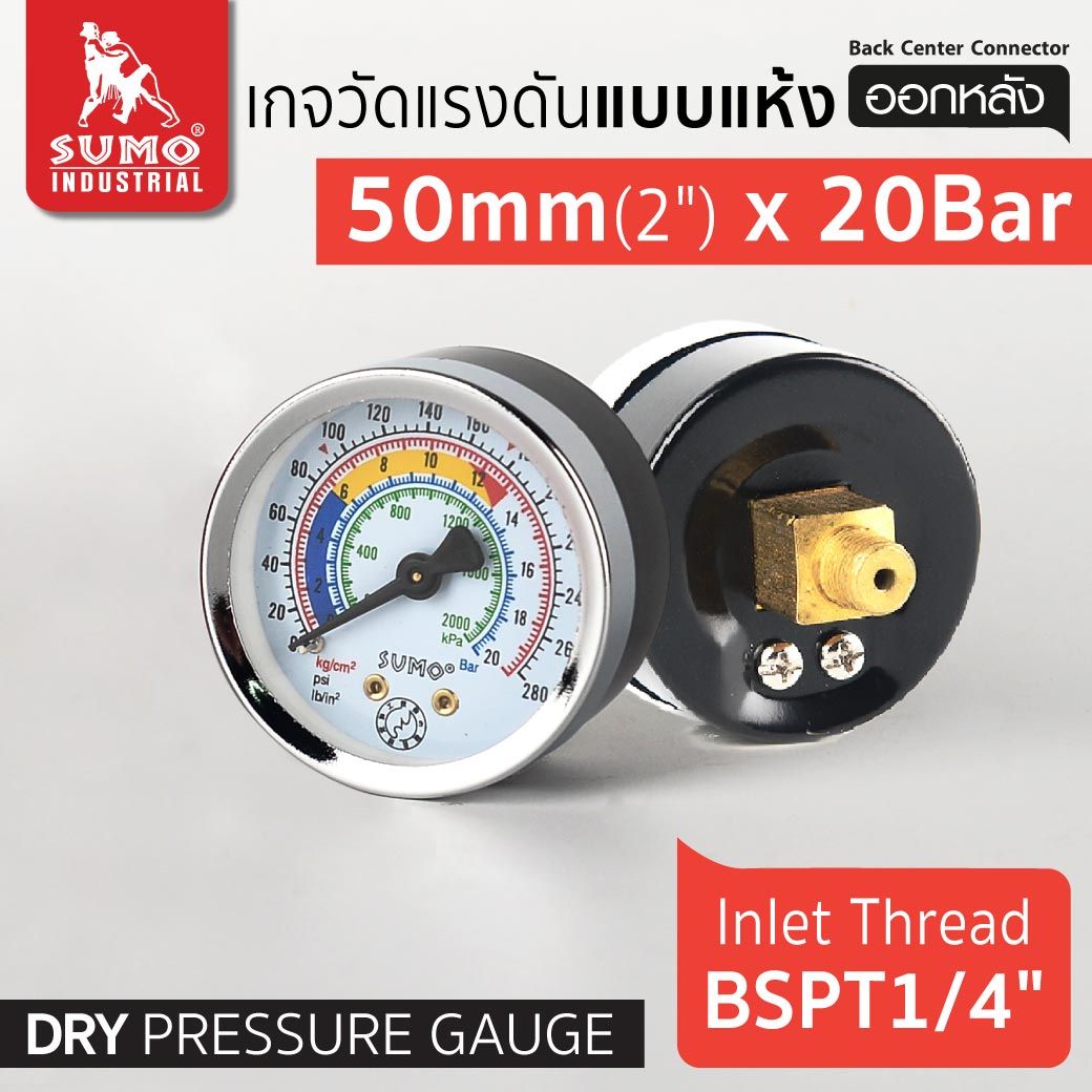 เกจ์วัดแรงดัน Pressure Gauge แบบแห้ง ออกหลัง sumo