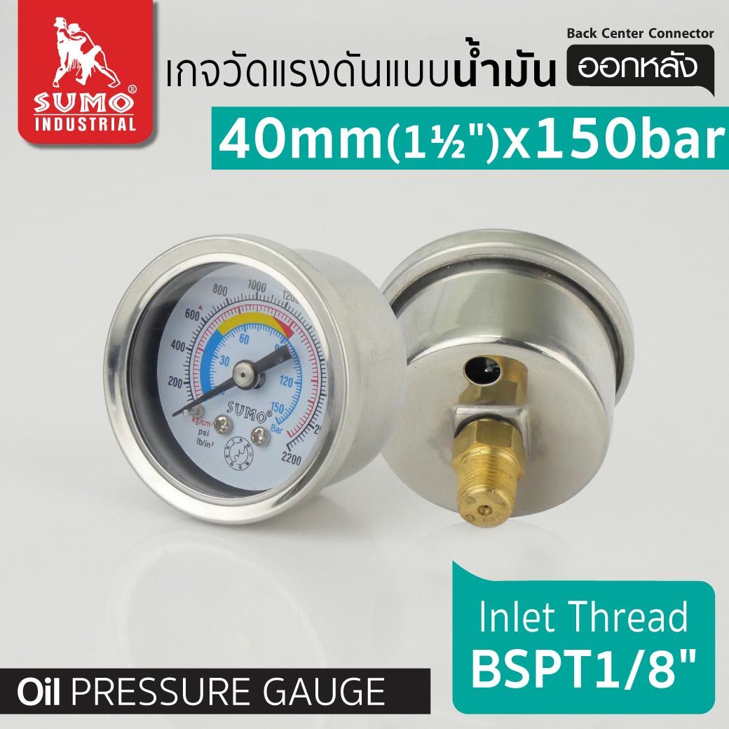 เกจวัดแรงดัน แบบน้ำมัน 40mm.x150barx1/8" ออกหลัง