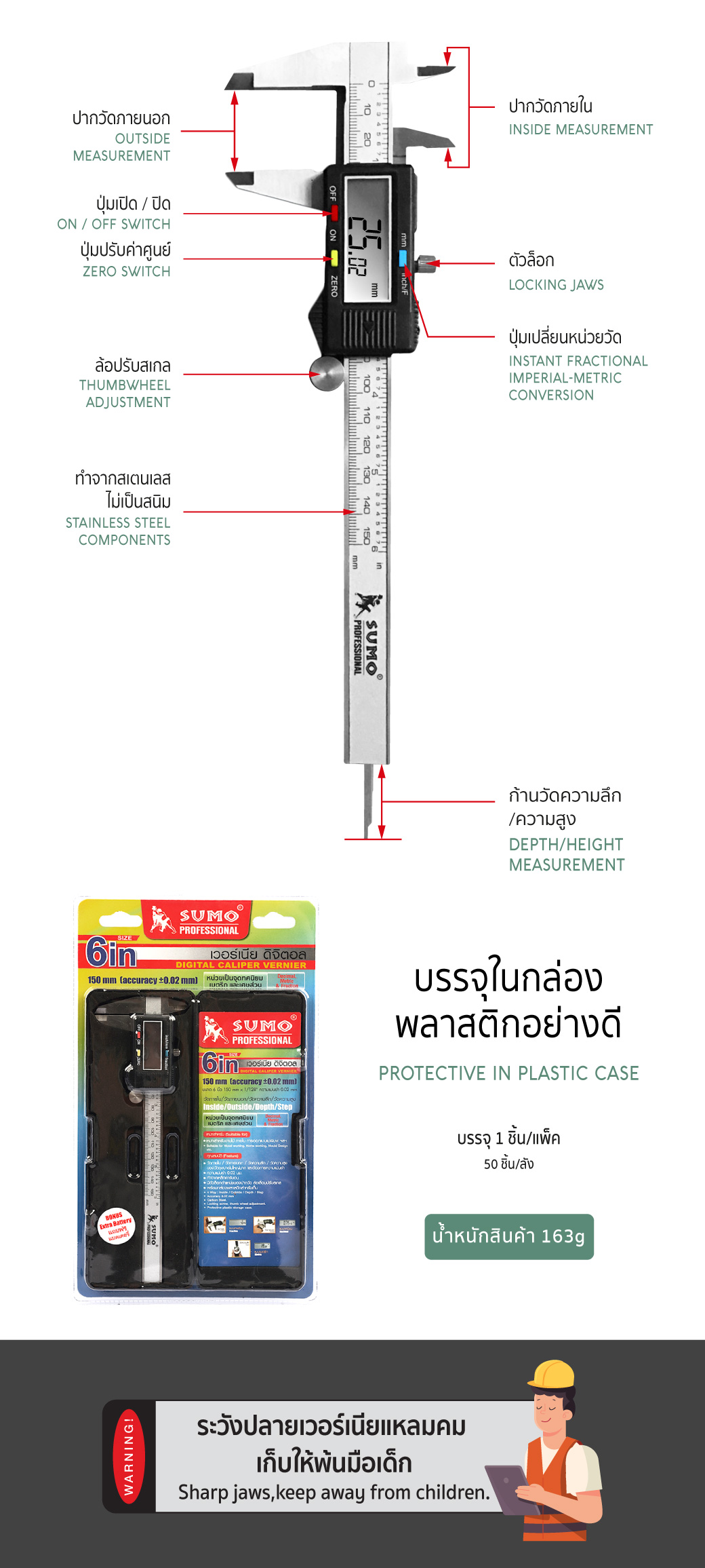 เวอร์เนีย ดิจิตอล 6" ละเอียด 0.02mm SUMO