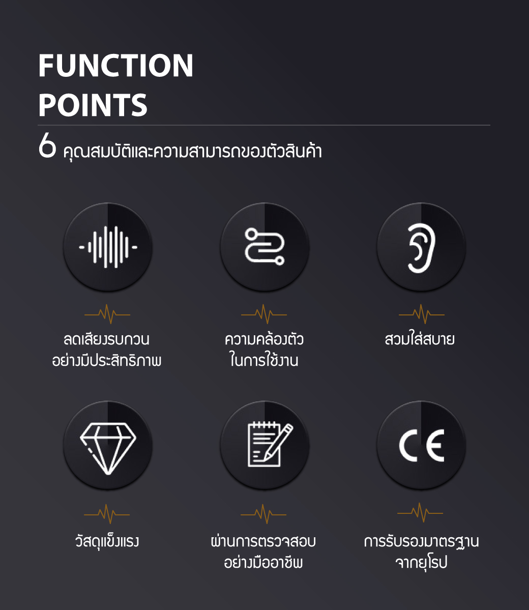• มีค่าการลดเสียง SNR 27 DB, NRR 25 DB