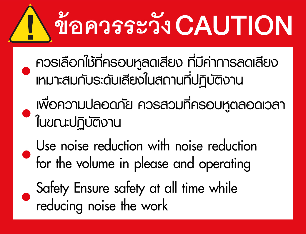 • เพื่อความปลอดภัย ควรสวม ที่ครอบหู ตลอดเวลาในขณะปฏิบัติงาน