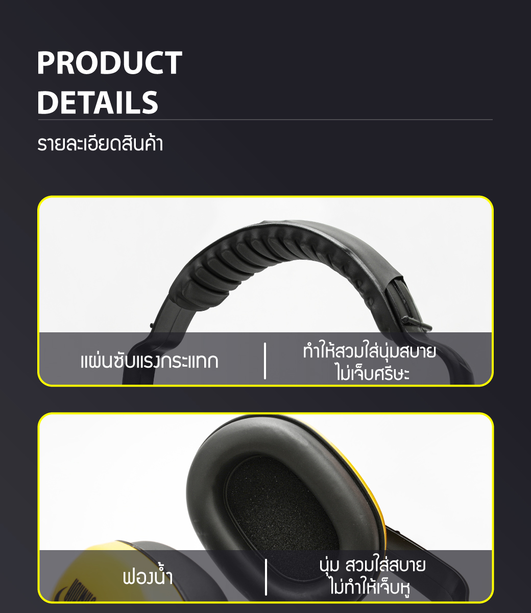 • ที่ครอบหู มีค่าการลดเสียง SNR 27 DB, NRR 25 DB
