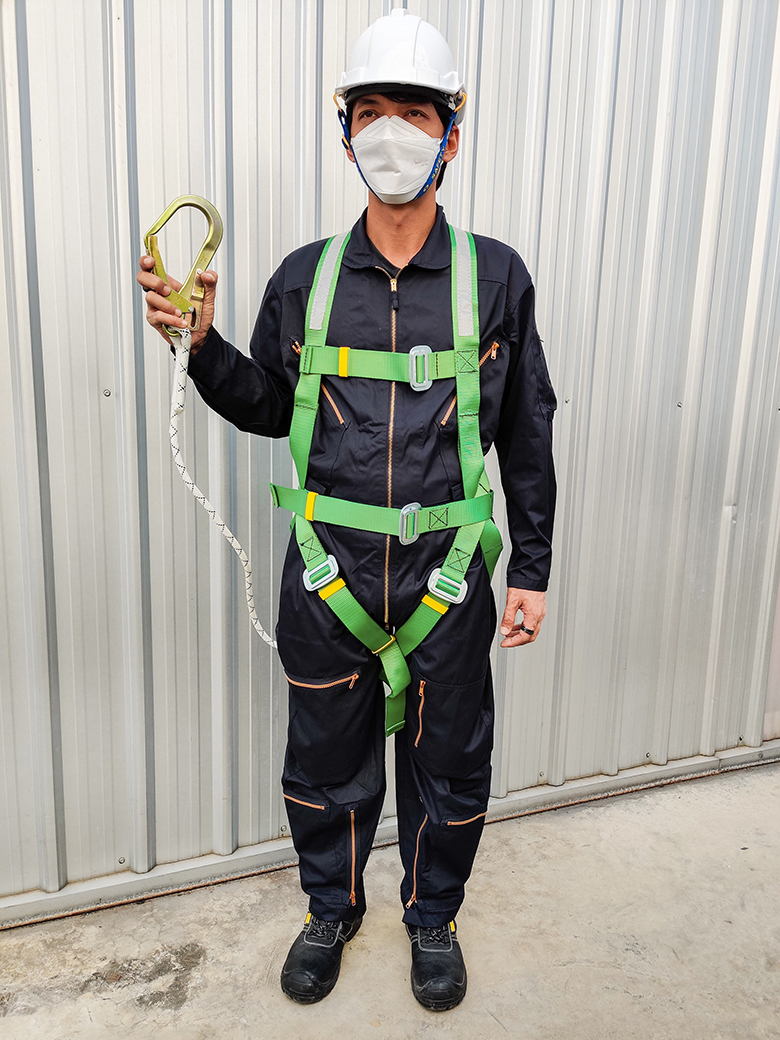 ข็มขัดเซฟตี้เต็มตัว พร้อมเชือกเซฟตี้เส้นเดี่ยวถักแบบพิเศษและตะขอขนาดใหญ่