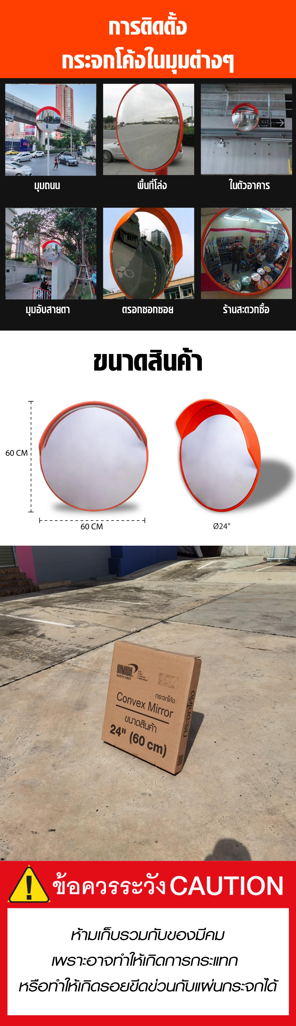 • กระจกจราจร สามารถติดตั้งด้วยตนเองได้ทั้งภายใน และภายนอกอาคาร