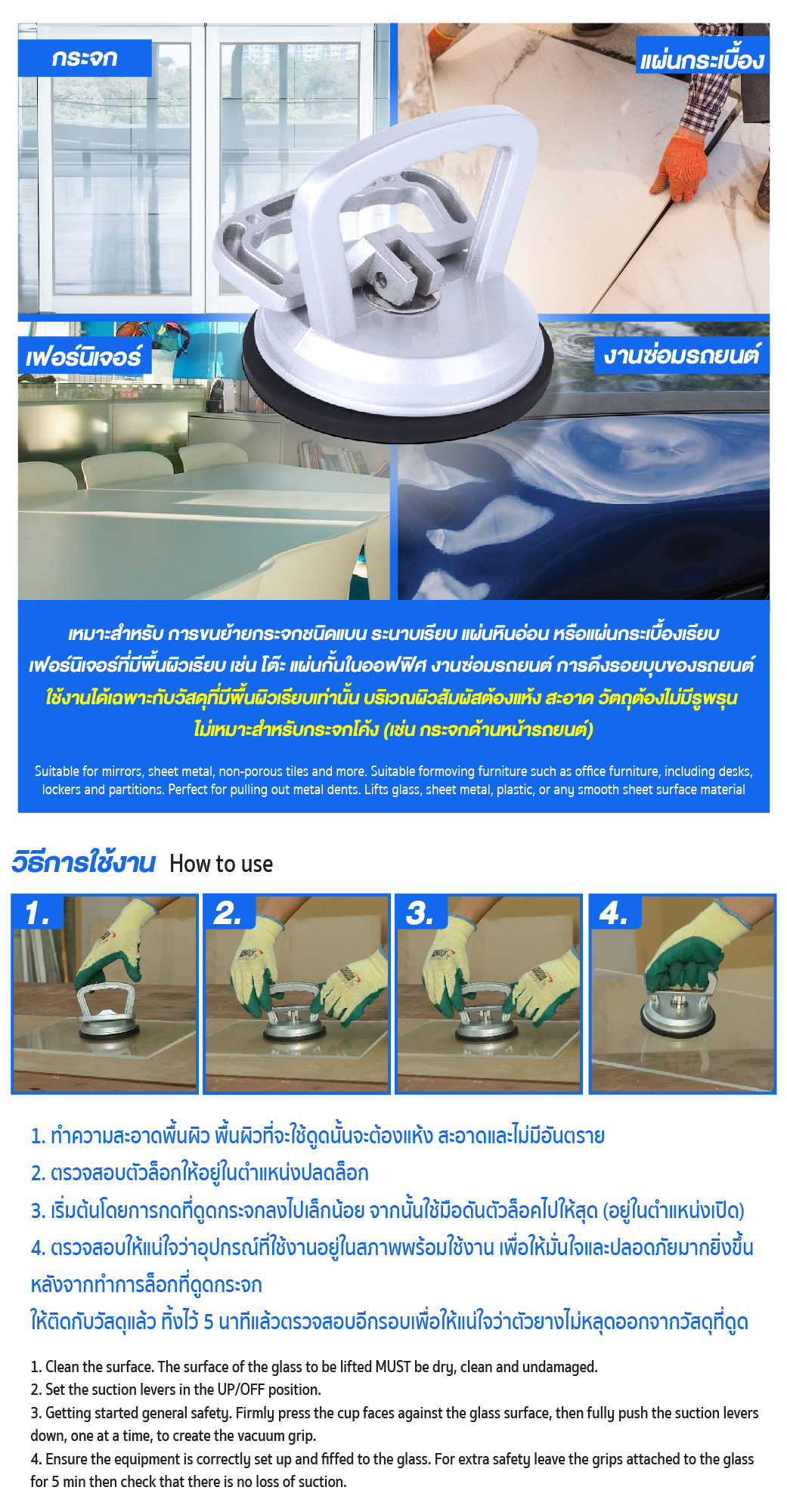 • ตัวดูดกระจก เหมาะสำหรับการขนย้ายกระจก แผ่นหินอ่อน หรือกระแผ่นกระเบื้องเรียบ