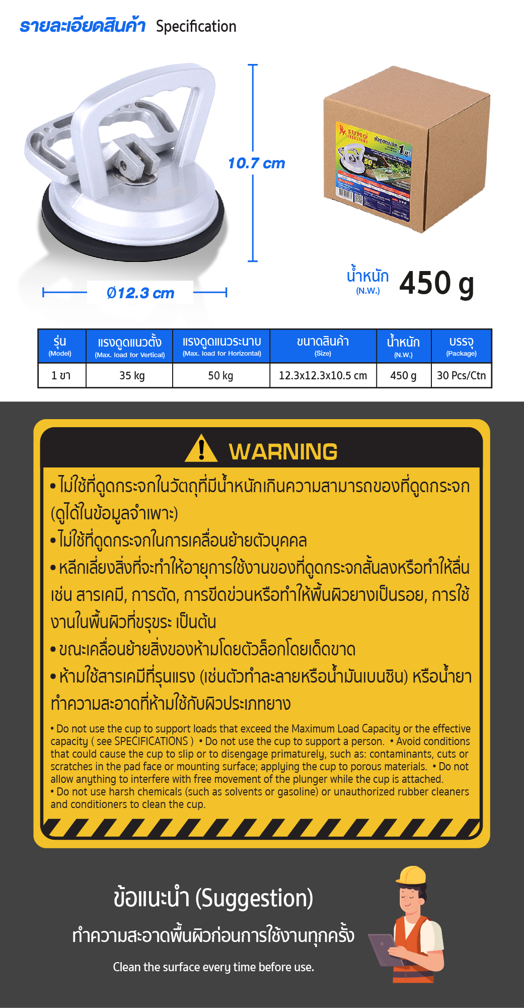 • ทำความสะอาดพื้นผิว พื้นผิวที่จะใช้ดูดนั้นจะต้องแห้ง สะอาดและไม่มีอันตราย