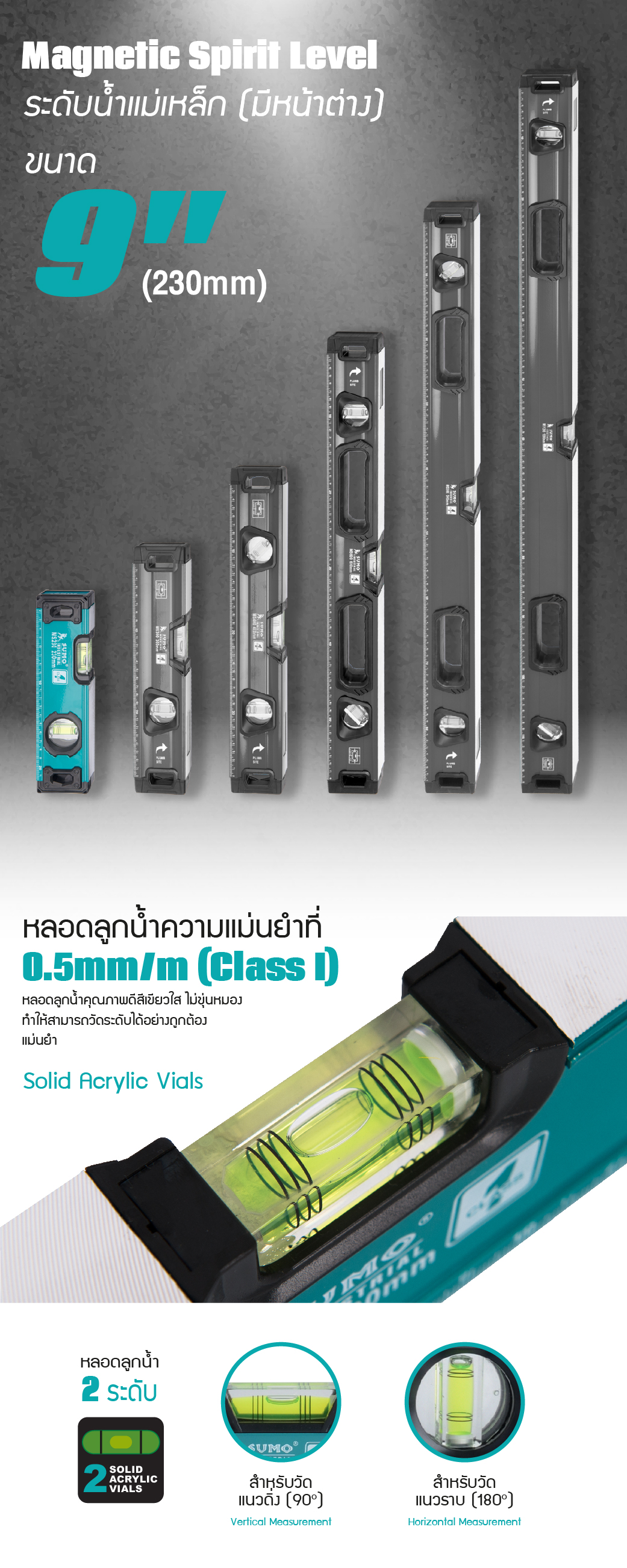 ระดับน้ำแม่เหล็ก 9" รุ่น MS230 SUMO
