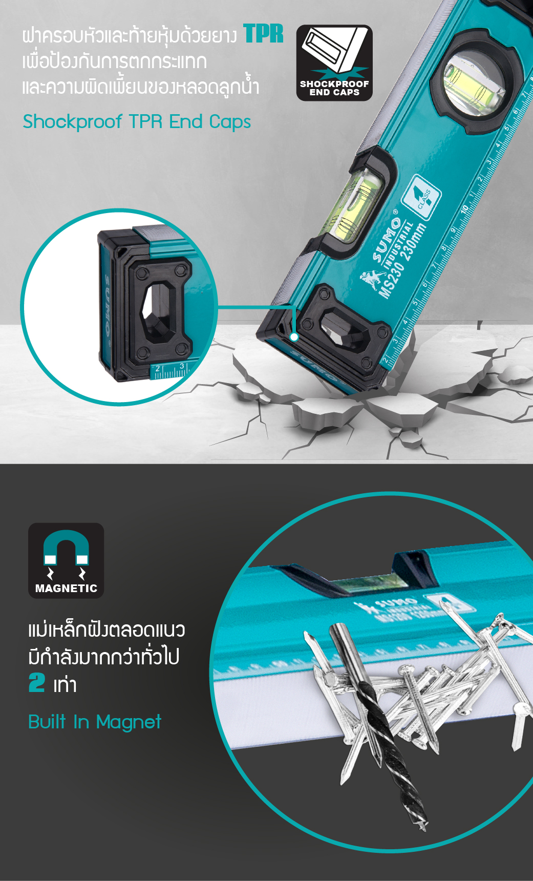 คุณกำลังรีวิว:ระดับน้ำแม่เหล็ก 9" รุ่น MS230 SUMO