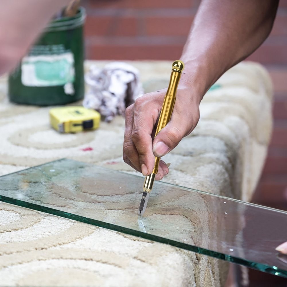 • อุปกรณ์ตัดกระจกทรงปากกาใช้สำหรับตัดกระจกต่างๆ โดยลักกษณะแบบลูกกลิ้งกรีดบนตัวกระจก