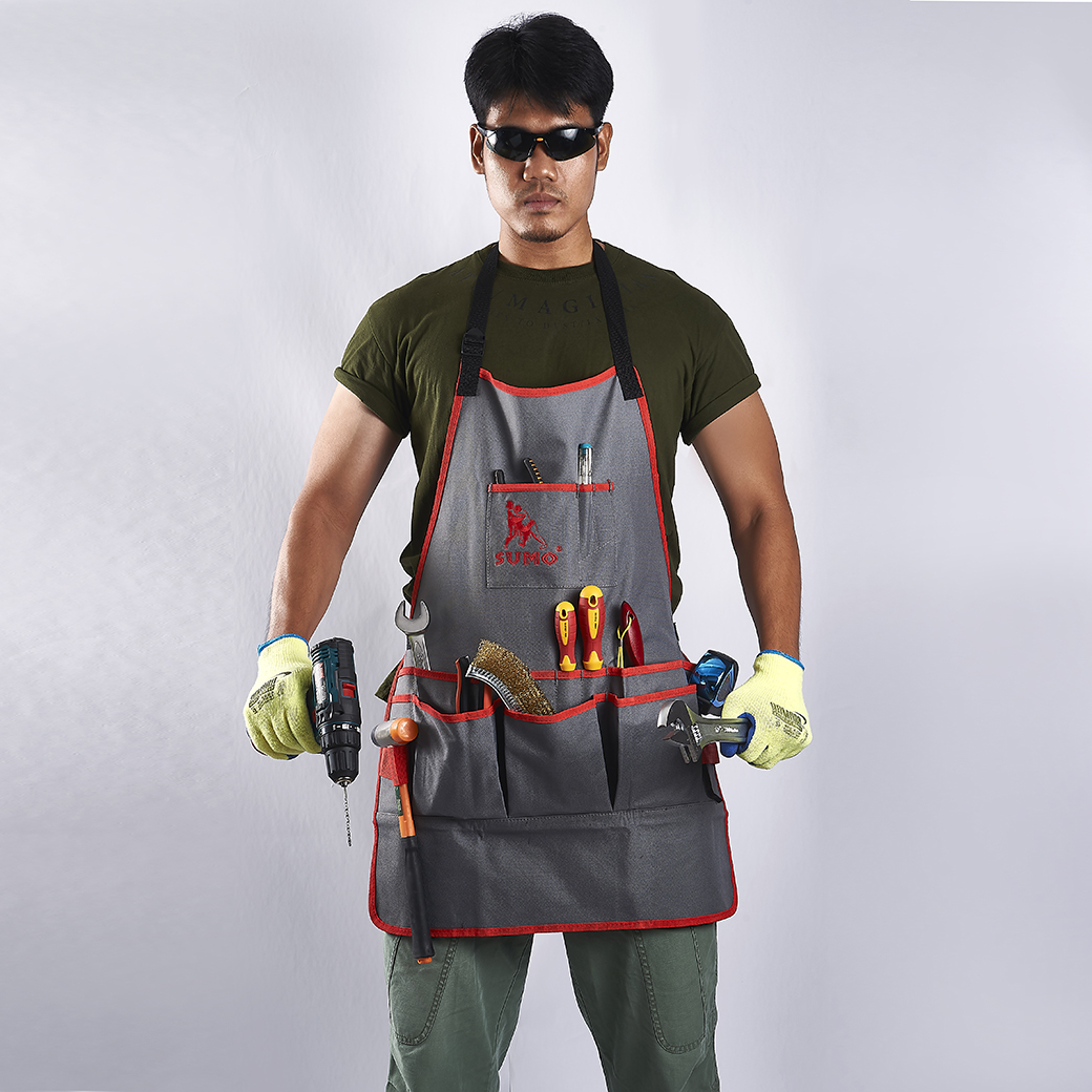 • Tools apron for keeping your tools close while you work. Designed with an adjustable neck strap and carry tools while working in gardens, garages, and workshops.