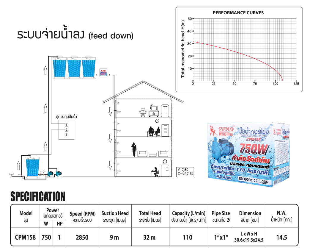 • ระยะส่ง (Total Head) 32m