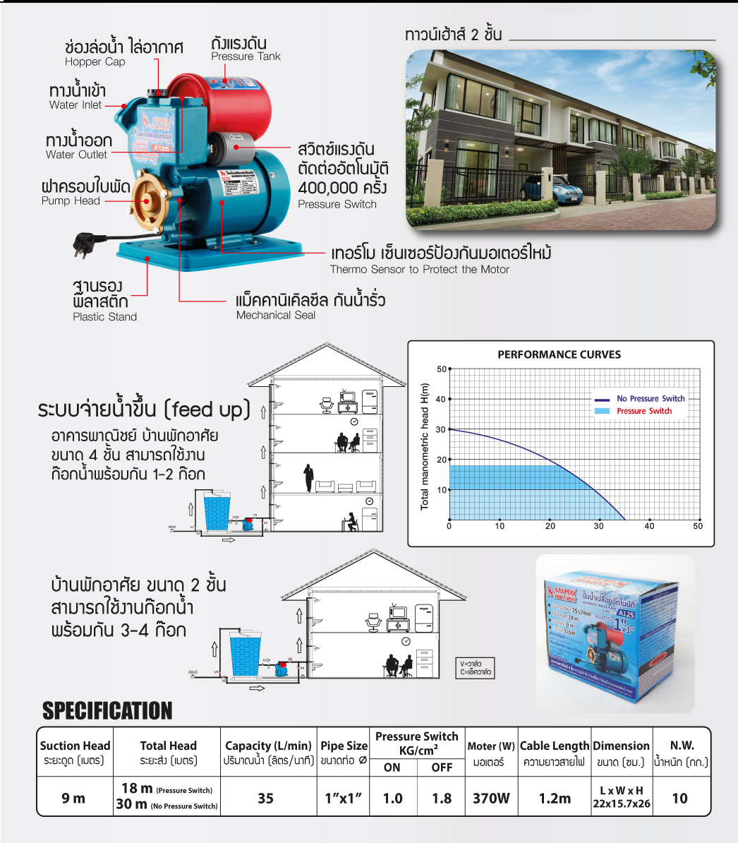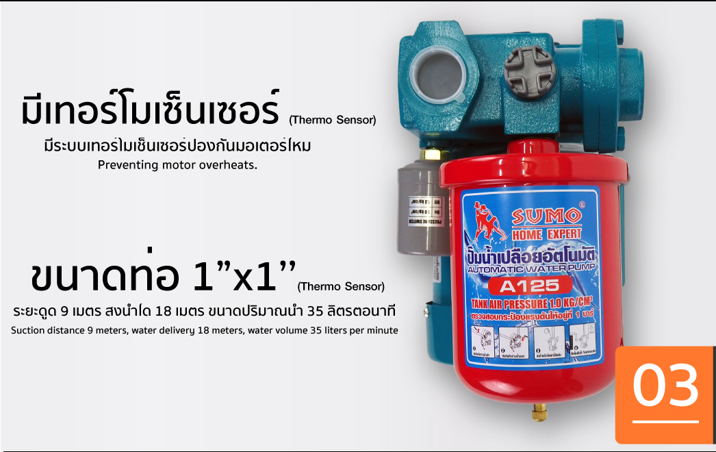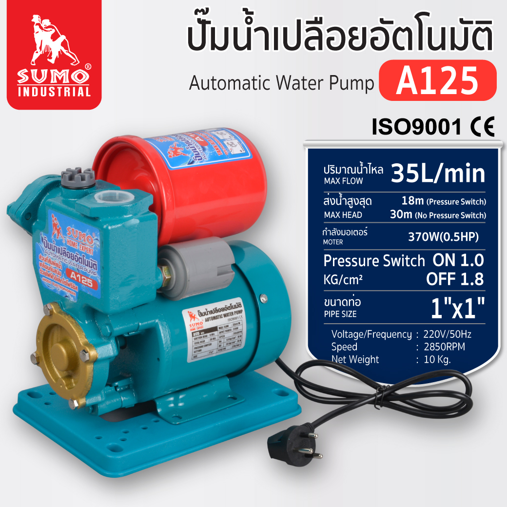 คุณกำลังรีวิว:ปั๊มน้ำเปลือยอัตโนมัติ รุ่น A125 SUMO