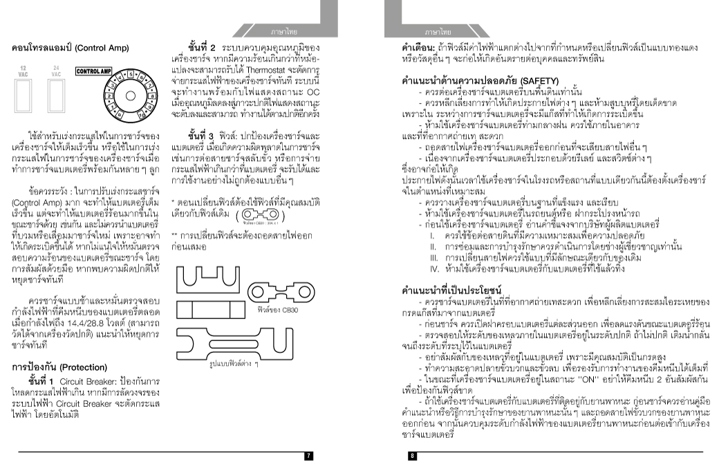 • ชั้นที่ 1 ฟิวส์เอซี (AC Input fuse) ปกป้องเครื่องชาร์จจากการลัดวงจร การใช้งานที่เกินกำลังหรือการใช้งานที่ไม่ถูกต้อง