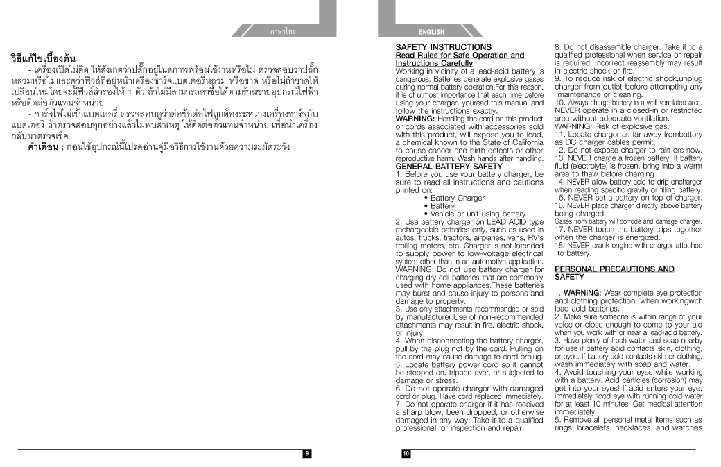 • Do not use Charger Model CB30 to charge the battery whuch it less than 10 Ah. It is because this device is high output and the battery will be over heat and expolded.