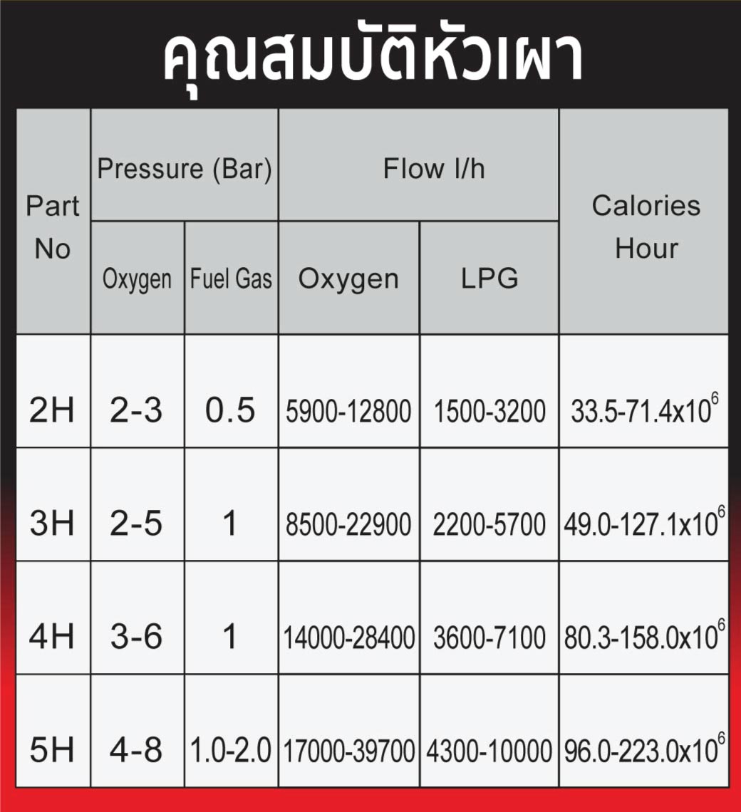 คุณสมบัติหัวเผา