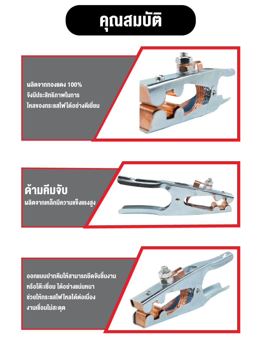 • สำหรับต่อเข้ากับสายเชื่อมไฟฟ้า และใช้หนีบกับชิ้นงานหรือโต๊ะเชื่อม