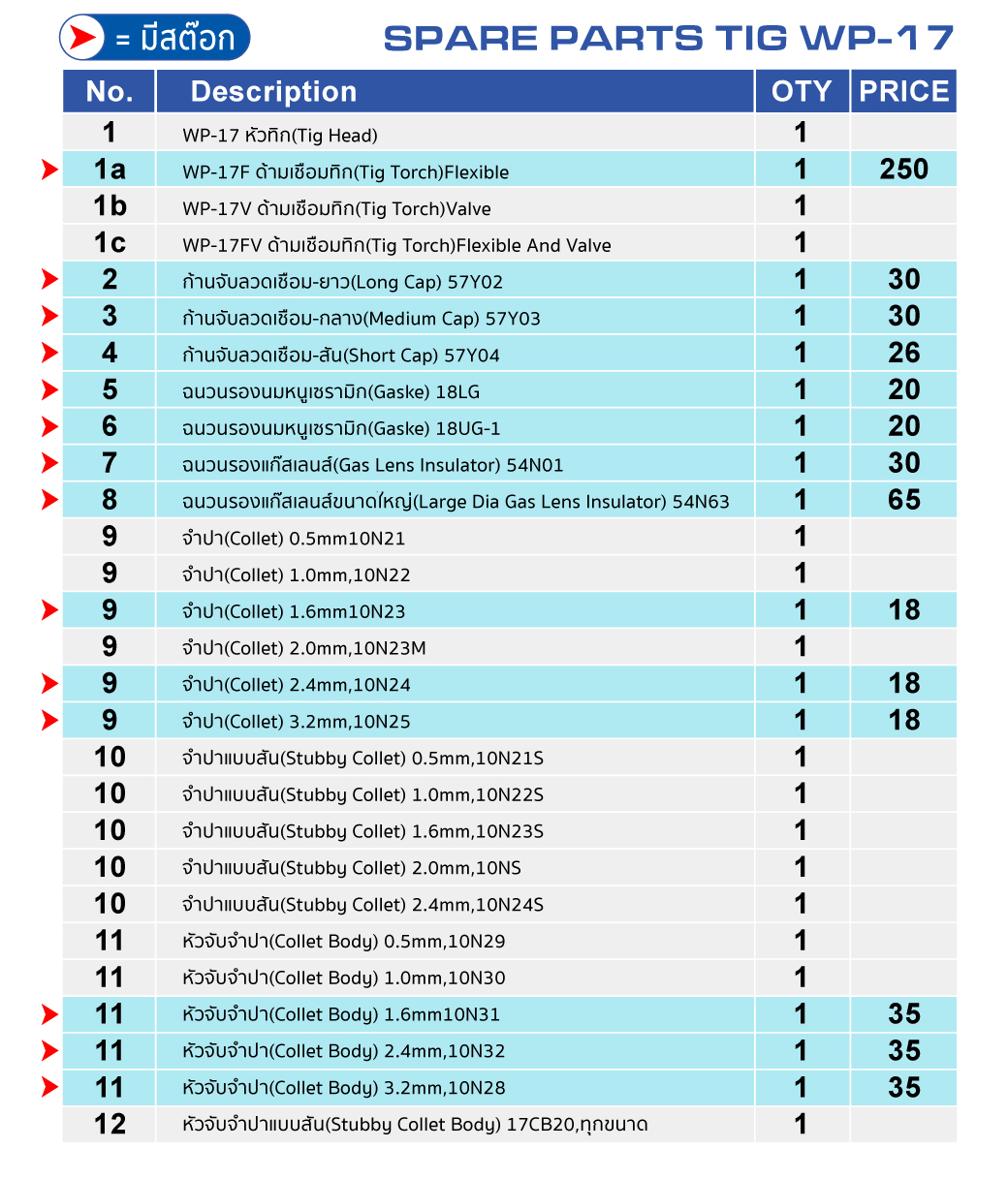 - อะไหล่เครื่องเชื่อม Tig