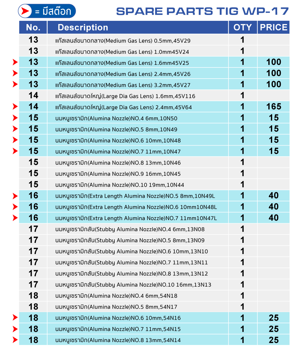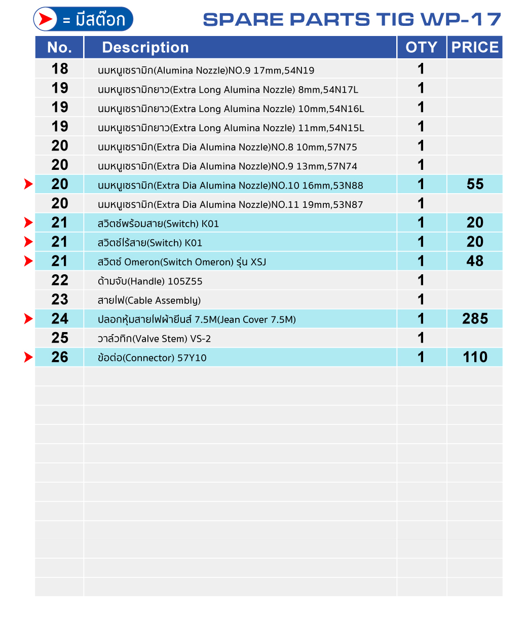 - 2.2 อะไหล่งานเชื่อมและงานตัดพลาสม่า