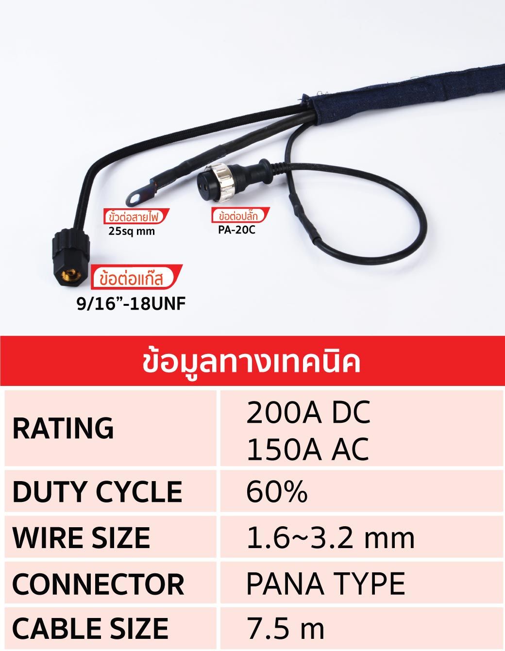 สายเชื่อมทิกพร้อมหัว WP26-25 ข้อต่อ PANA