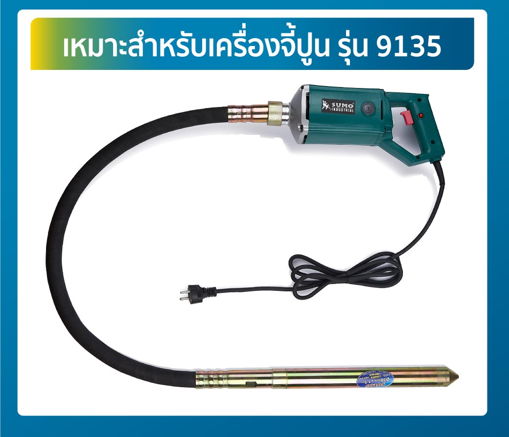 สายจี้ปูน Ø38mm ยาว 1.5 เมตร สำหรับรุ่น 9135 ขนาดเกลียว 48x1.2 มม. แกน Diameter Ø8mm ใช้ประกอบเข้ากับเครื่องจี้ปูน