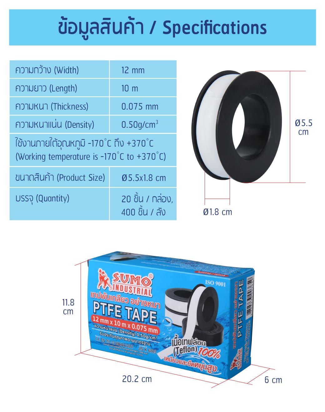 เทปพันเกลียว 12มม.x10ม.x0.075มม. 0.50g/cm3 SUMO