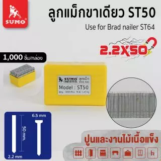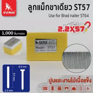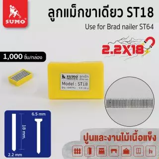 • หัวปืนตะปูแบบขาเดี่ยว ใช้กับลูกแม็ก ST WT ขนาดตะปูหัว 6.5 mm. ความยาว: 18-64 mm. แกนกลาง 2.2 mm จำนวนบรรจุตะปู : 75 pcs.
