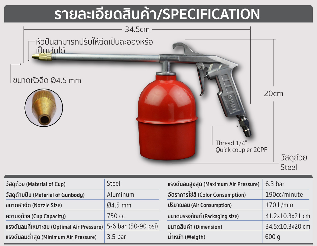 • ใช้สำหรับงานพ่น น้ำมันโซล่าหรือเบนซิล