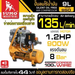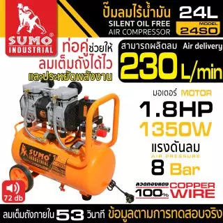 คุณกำลังรีวิว:ปั๊มลมไร้น้ำมัน L Type 50L SUMO