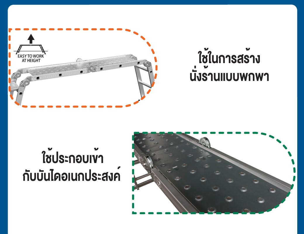• สามารถวางสิ่งของ เครื่องมือ หรือทำเป็นนั่งร้าน ช่วยให้ง่ายต่อการทำงานหรือบำรุงซ่อมแซมในที่สูงได้