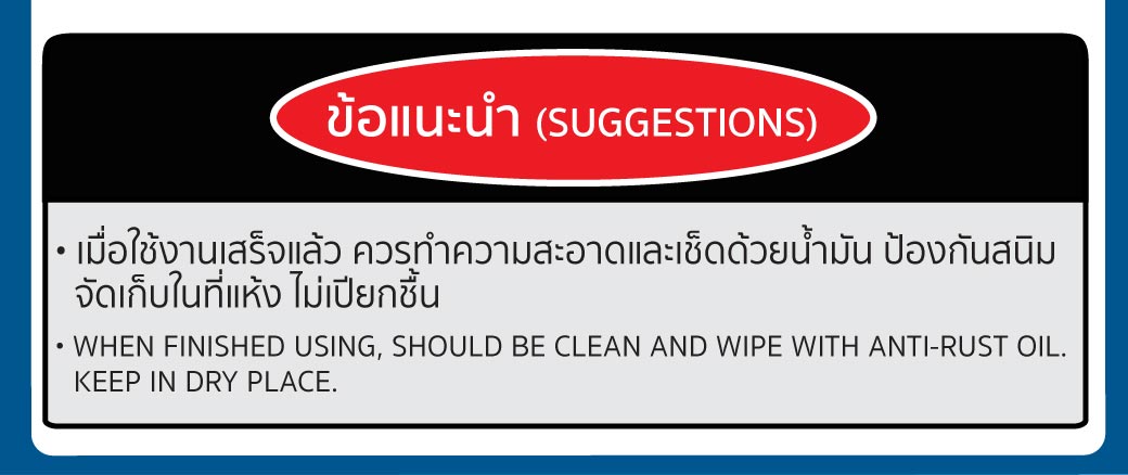 • เมื่อใช้งานเสร็จแล้ว ควรทำความสะอาดและเช็ดด้วยน้ำมัน ป้องกันสนิม