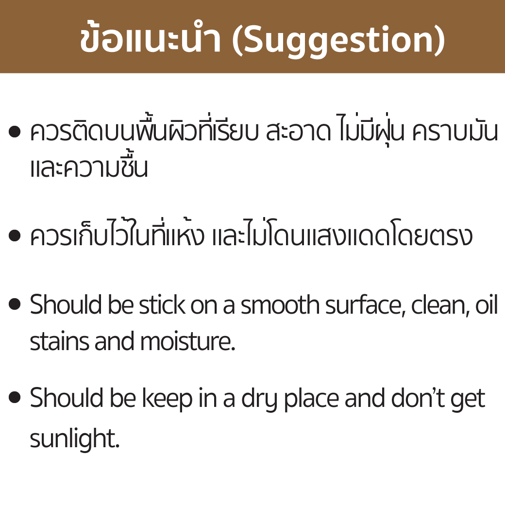 • ควรติดบนพื้นผิวที่เรียบ สะอาด ไม่มีฝุ่น คราบมัน เเละความชื้น
