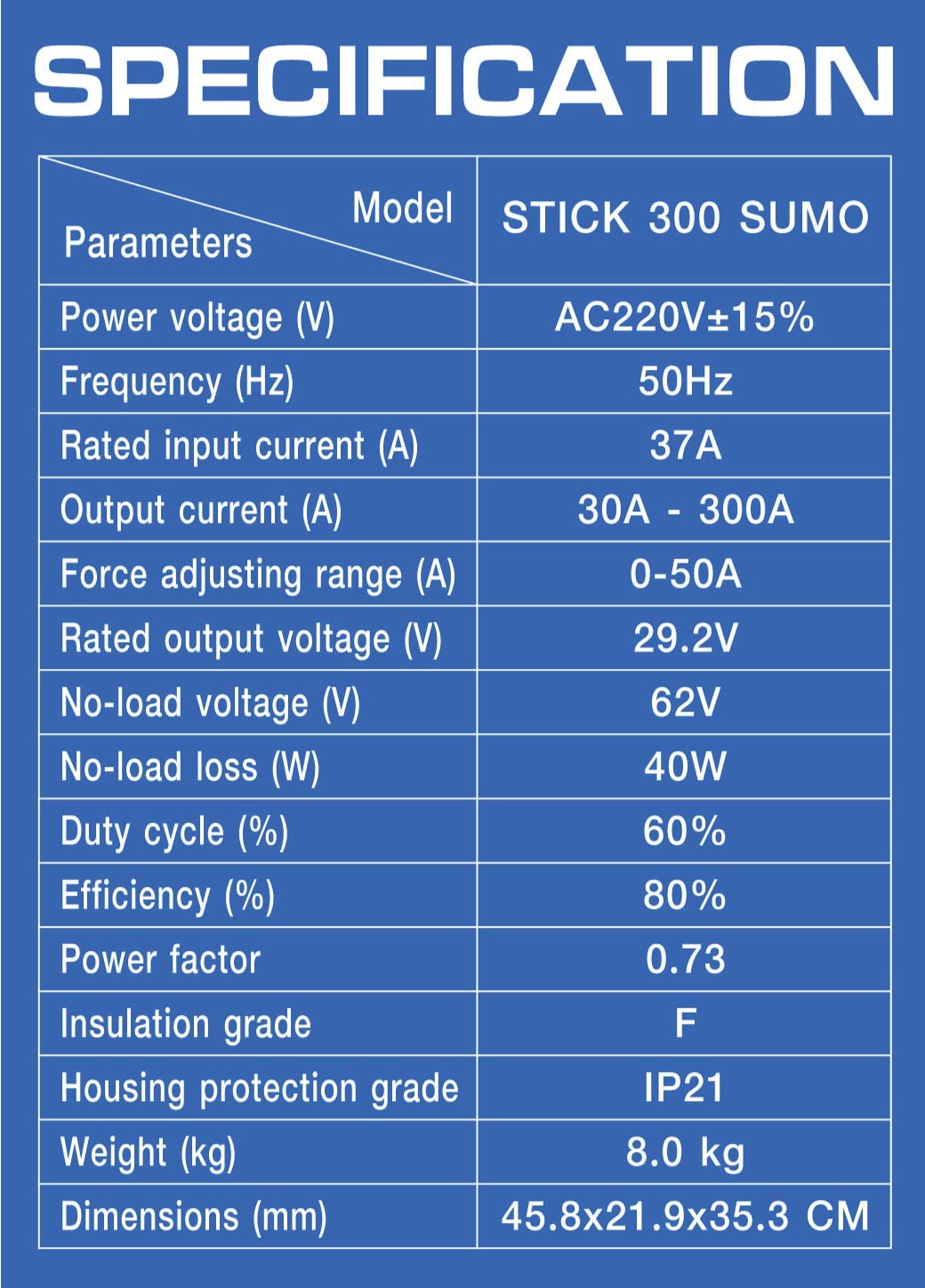 คุณกำลังรีวิว:เครื่องเชื่อม STICK-300 SUMO Smart
