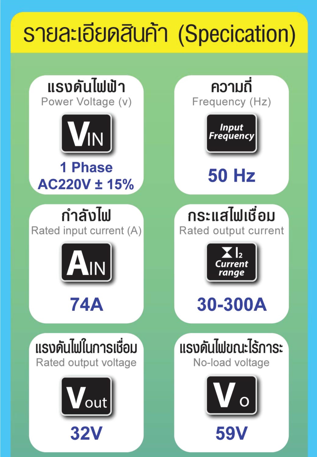 • แรงดันไฟในการเชื่อม : 32V