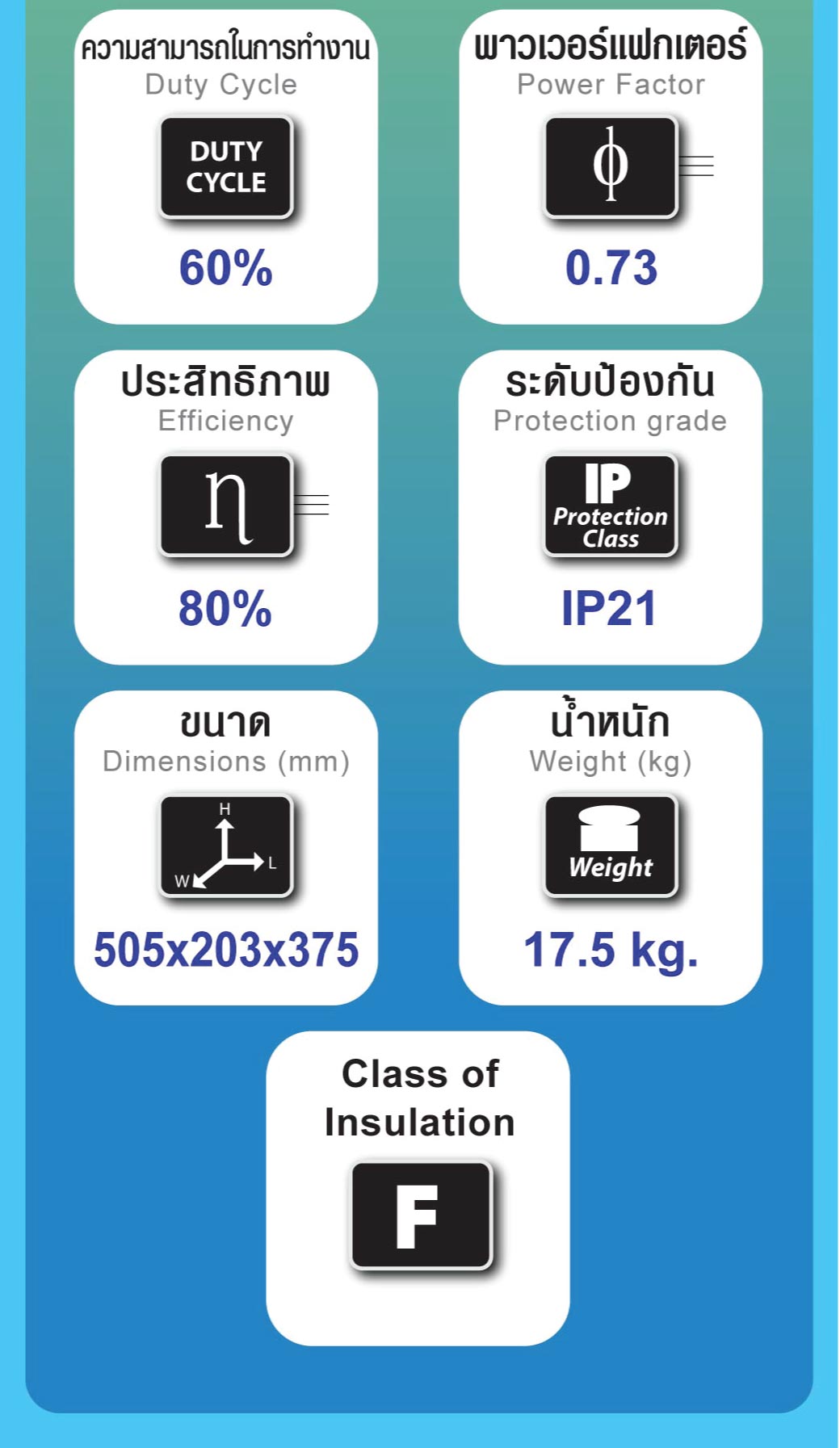 • กระแสไฟเชื่อม 30-300A