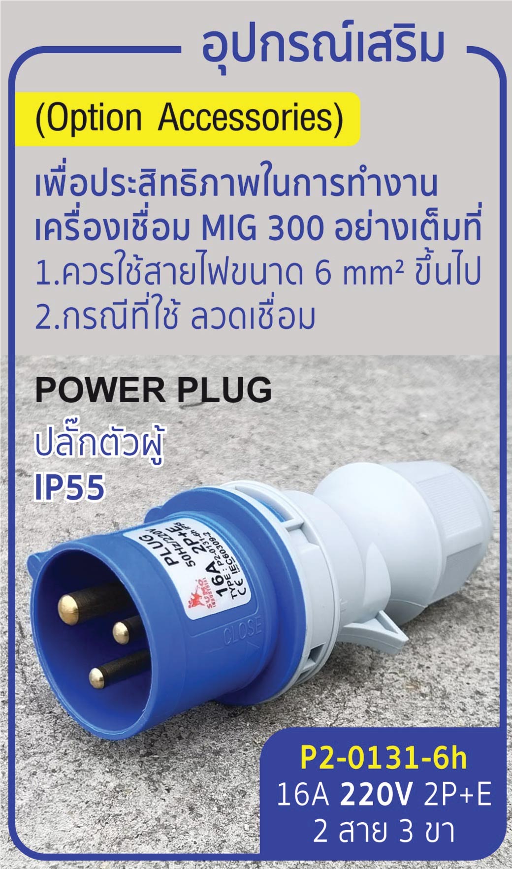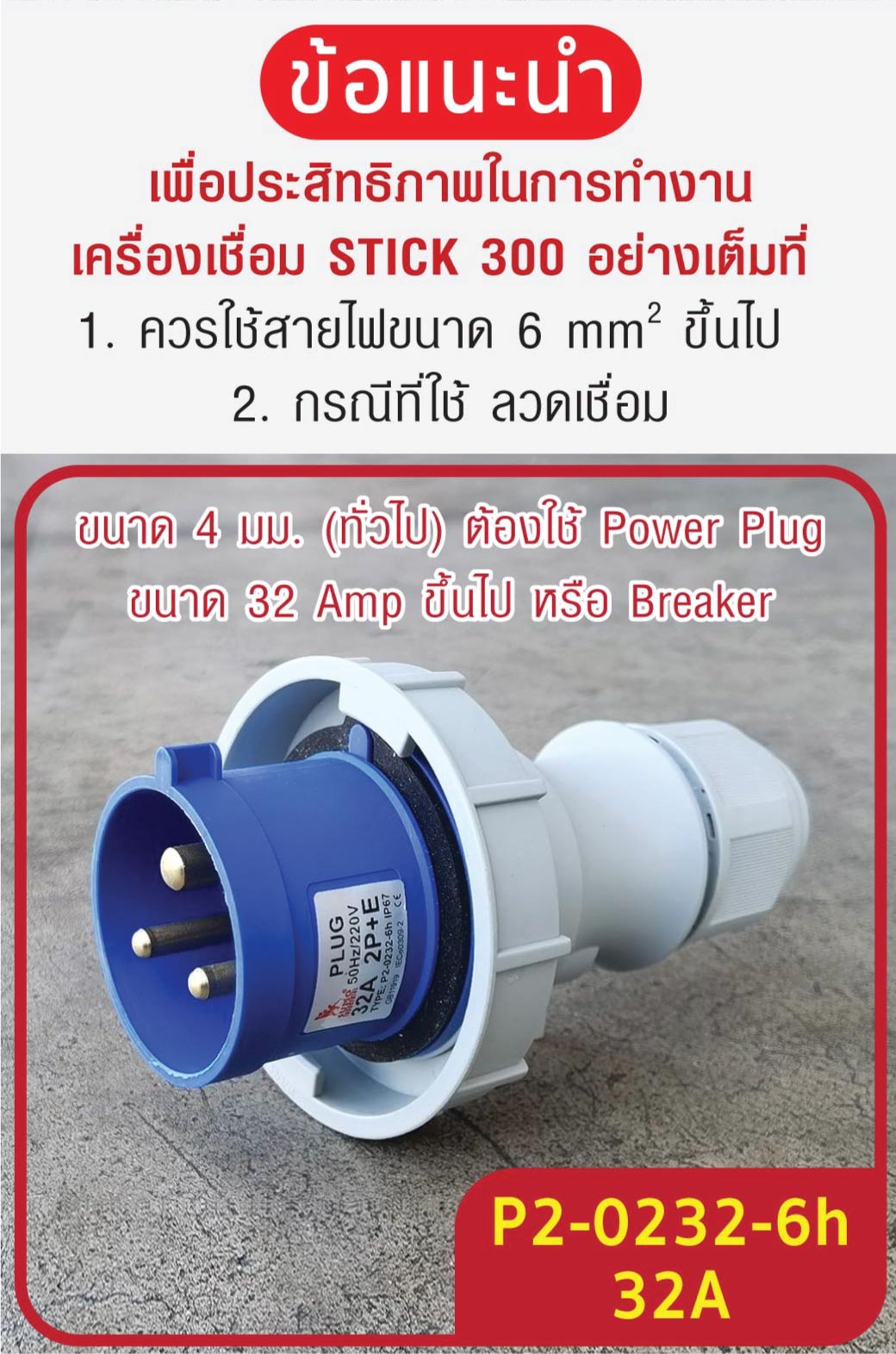 • กระแสไฟเชื่อม : 30-300A