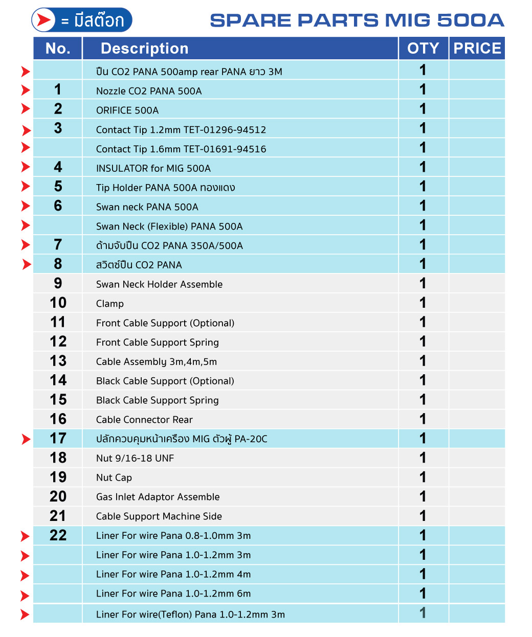 • ระดับ (Rating) : 500A CO2 And 350A แก๊สผสม (Mixed Gases)